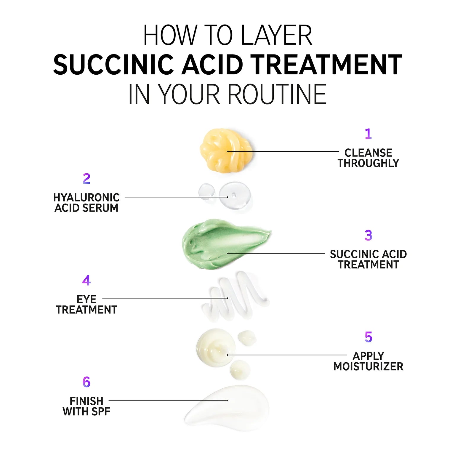 We suggest cleansing with Salicylic Acid Cleanser, followed by hydrating skin with Hyaluronic Acid before applying Succinic Acid Treatment.